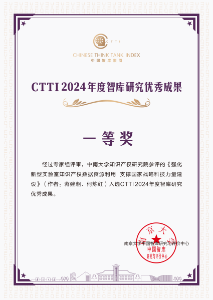 喜报丨中南大学知识产权研究院荣获CTTI2024年度智库研究优秀成果一等奖、二等奖与智库建设优秀案例
