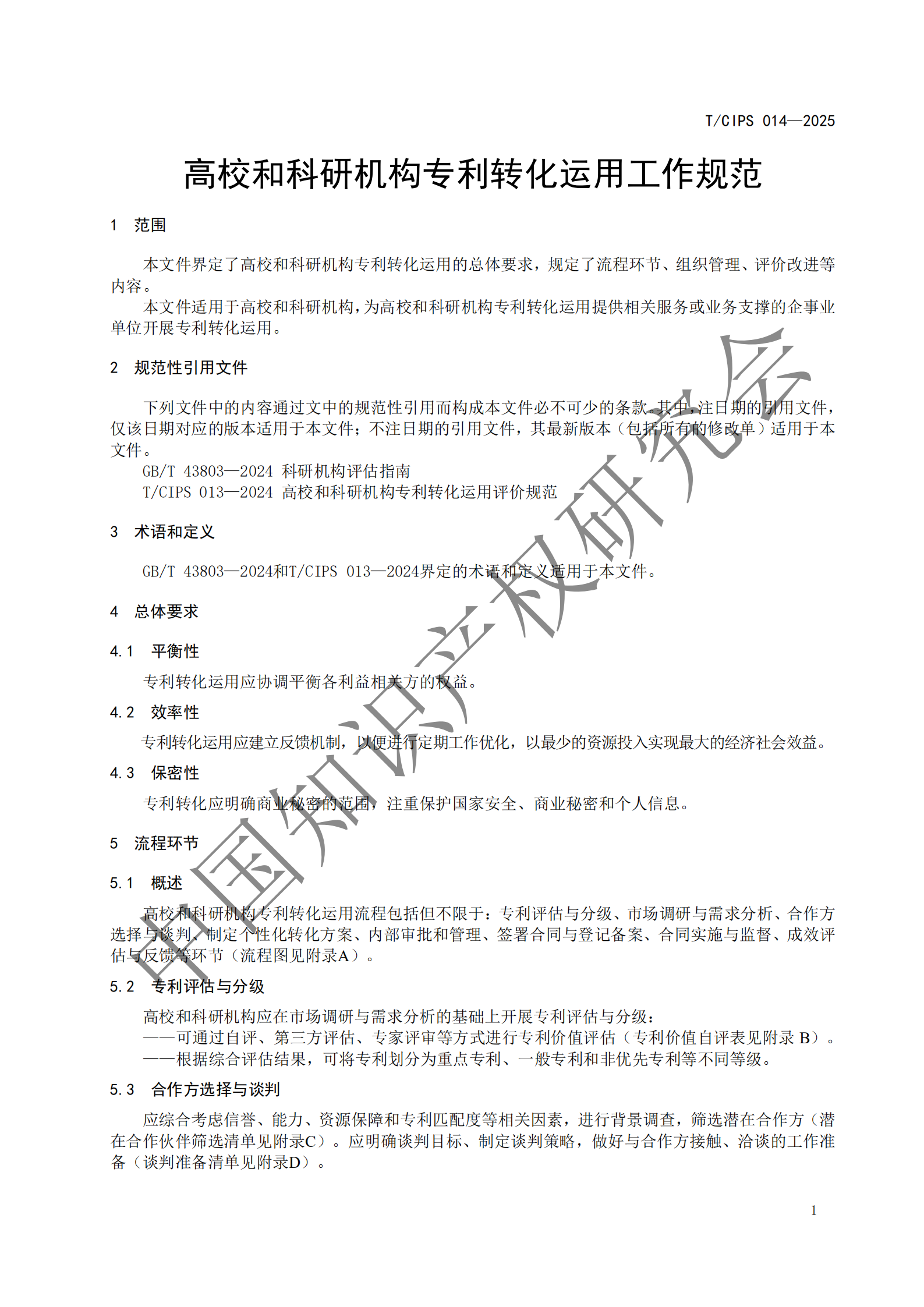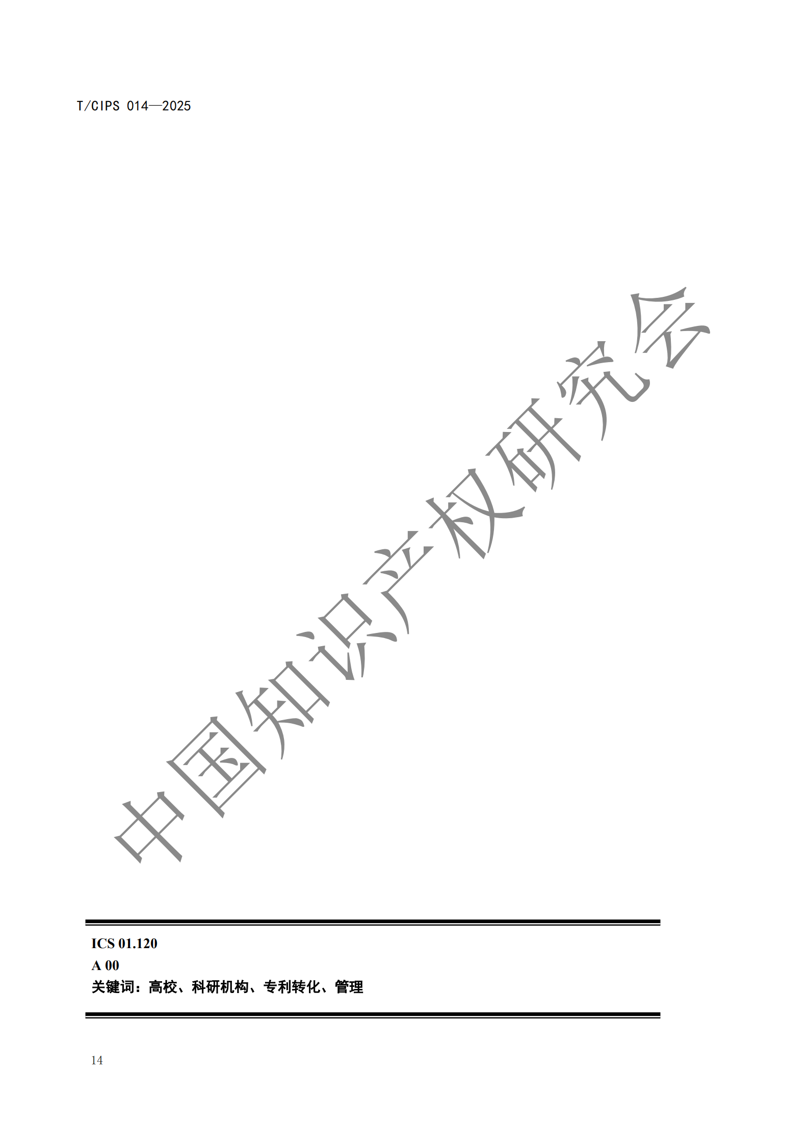 T/CIPS 014—2025高校和科研机构专利转化运用工作规范