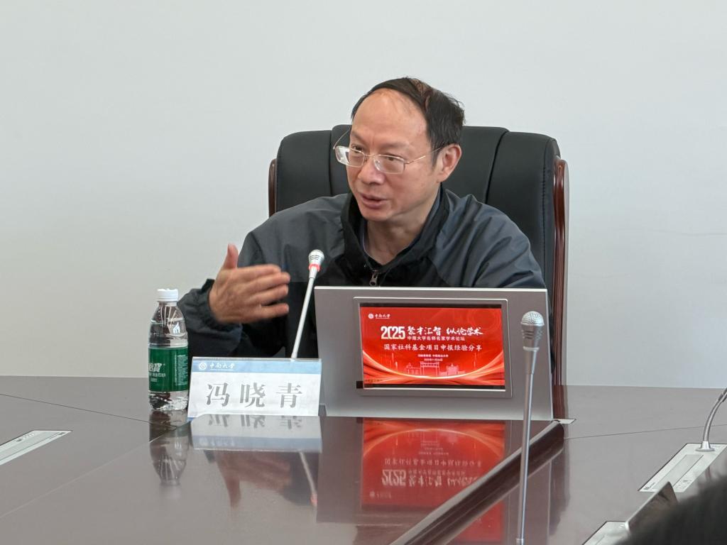 2025年11月26日上午,中国政法大学民商经济法学院冯晓青教授应邀莅临中南大学法学院,于法学院210会议室作“国家社科基金项目申报经验分享”专题讲座。本次讲座由中南大学法学院副院长何炼红教授主持,法学院青年教师及博士研究生参加了座谈和交流。
