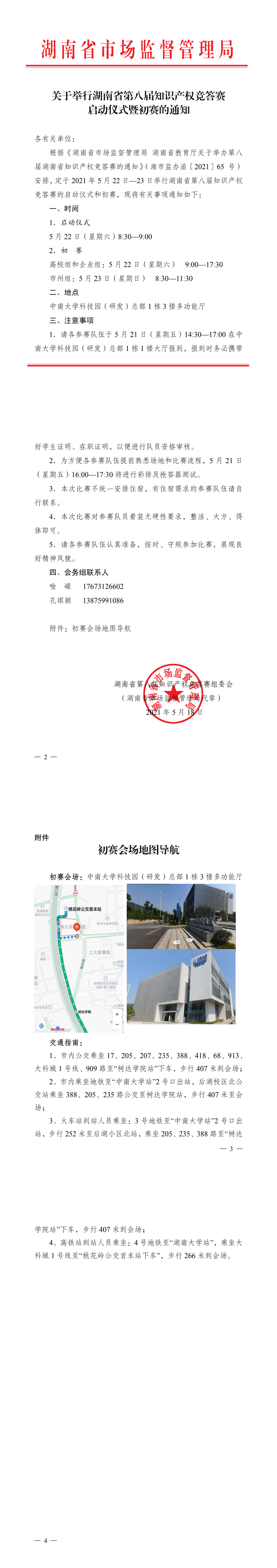 初赛会场:中南大学科技园(研发)总部 1 栋 3 楼多功能厅