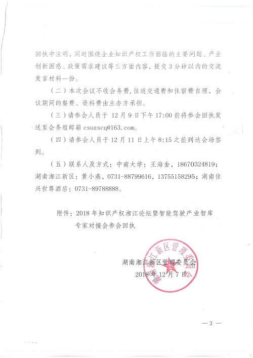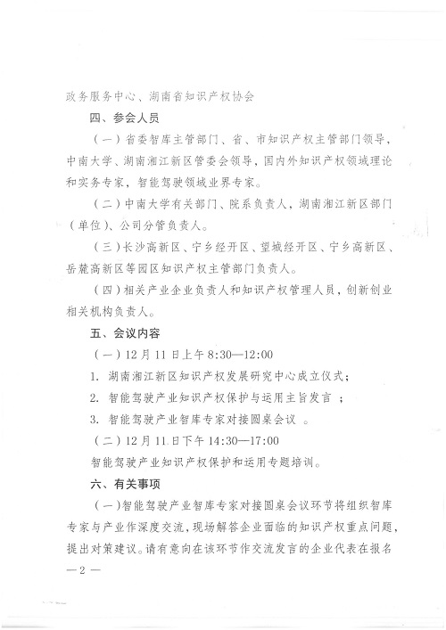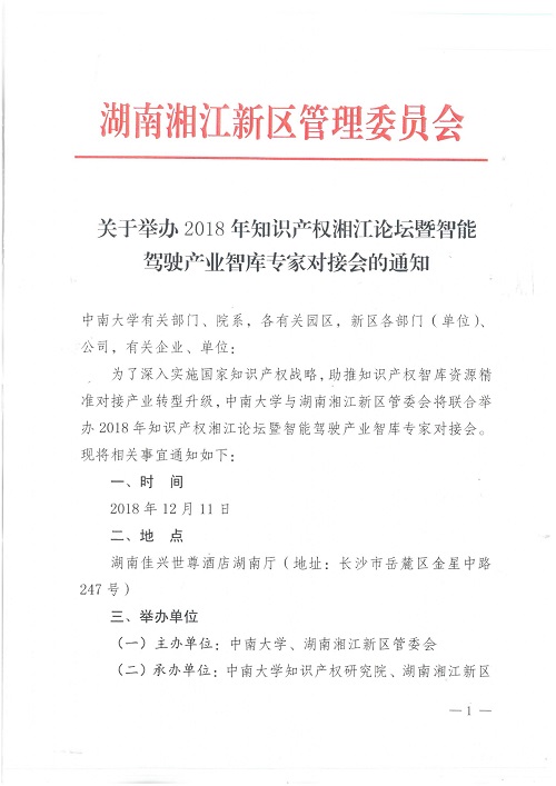 湖南湘江新区管理委员会关于举办知识产权湘江论坛暨智能驾驶产业智库专家对接会的通知