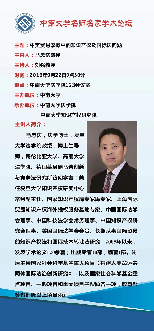 讲座预告 | 马忠法:中美贸易摩擦中的知识产权及国际法问题